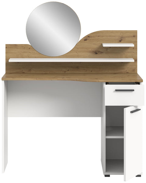Rootz Vanity Dressing Table Dressing Table Cosmetic Table - Oak Nb - White Nb - 1 Drawer - 1 Door - 2 Shelves - Modular Design - FSC Certified - 110cm x 135cm x 46cm