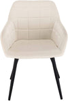 Gezellig en ergonomisch ontwerpElke stoel heeft een gebogen rugleuning en armleuningen, die speciaal zijn ontworpen om uw rug en armen te ondersteunen voor maximaal comfort. De gladde, zachte fluwelen bekleding nodigt u uit om te ontspannen en te genieten van uw zitervaring.