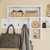 Creëer een stijlvol middelpunt in uw hal met The Rootz Decorative Wall Coat Rack. Deze chique kapstok heeft 5 compartimenten, perfect voor het tentoonstellen van planten of decoratieve stukken. Met een stevige MDF-constructie en afmetingen van 110x53x15 cm biedt het voldoende ruimte voor uw spullen. De 4 metalen haken stellen u in staat om jassen, mantels, handtassen en meer op te hangen, waardoor uw ruimte georganiseerd en rommelvrij blijft. Combineer het met onze schoenenkasten voor een complete set!