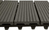 Duurzaam en weerbestendigDeze tegels zijn gemaakt van een robuuste mix van 60% houtvezels en 30% plastic en zijn gebouwd om lang mee te gaan. Ze zijn UV-bestendiger dan traditioneel hout, stoten vocht af en zijn bestand tegen hoge temperaturen.