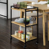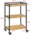 Details: This trolley with 3 shelves is very practical and handy for your kitchen, dining room, living room and bathroom, space-saving as well! Perfect for entertaining, the trolley is ideal for holding food or plates and transporting items from room to room. With 4 casters (2 casters with brake function), you can move the trolley around your home easily. 3 shelves are made of bamboo with varnished coating. Black powder coated steel frame ensures stability and durability. With this trolley, your home would be more stylish and spacious. Product Details Material: Metal, bamboo. Color: Black + natural. Dimensions: W47 x D33 x H78cm. Weight: 6kg. Load capacity: 10kg/tier. Item comes in a flat pack and requires self-assembly. Detailed instructions supplied. The decorative elements are not included in the delivery. Please contact us by email when you have any question, we will reply as soon as possible!