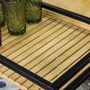 - 3 shelves are made of bamboo with varnished coating. The frame is made of black powder coated steel.