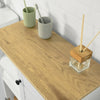 - Made of high quality MDF in white lacquer. The top is made of MDF with wooden effect.
