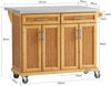 - It has a stainless steel worktop with widened board, 2 drawers, 2 cupboards with internal adjustable shelf, 1 towel rack and 4 wheels (2 with brake).