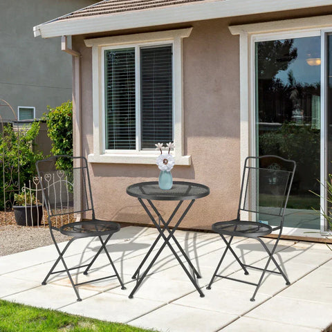 Rootz 3 Parts Bistro Set With Table & 2 Chairs - Garden Furniture - Metal - Black - 55.5 x 55.5 x 69.5cm