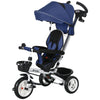 The Rootz 6-in-1 Children's Tricycle with Push Bar, Roof, Strap, Storage Basket, 18+ Months, Dark Blue