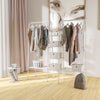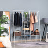 Modern clothes rack includes two clothes rails and 4-tier shelves