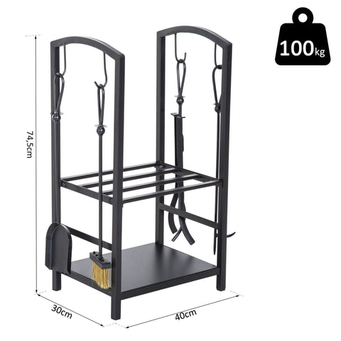 Rootz Firewood Stand - Black - Steel - 15.75 cm x 11.81 cm x 29.33 cm