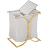 This beautiful bamboo laundry basket adds a cozy natural touch to your bathroom or laundry room. It has two fabric baskets for sorting laundry before washing, each with a capacity of 42.9 liters.