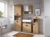This stunning 3-piece bathroom combination in Brown imitation features a bathroom cabinet, vanity unit, and mirror cabinet, each crafted for high-quality and easy-care use. Its sophisticated milled panel look lends a warm and natural charm to any bathroom space, offering abundant storage while maintaining a clean and organized aesthetic. This versatile set is perfect for customizing and enhancing your bathroom's functionality and style.