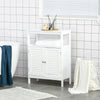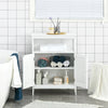 This Rootz bathroom cabinet is designed to blend in any modern bathroom. Its space saving design is ideal for small bathroom where space is limited and it provides with ample storage for toiletries and cleaning supplies. The freestanding unit comes in white finish with one cabinet and one open shelf to satisfy your storage needs. The cabinet has 2 doors with chromed metal handles for easy opening and closing. The whole set is a stylish and functional furniture that will enhance your bathroom decor.
