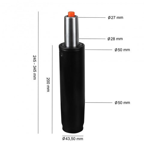 Rootz Black Metal Gas Spring - Up to 180kg - 245-345mm - 10cm Height Adjustment - Pneumatic Spring for Chairs