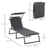 1x Rootz Sun lounger 5-way adjustable - Dark gray - Aluminum, Texteline - 64.56 x 25.98 x 33.26 cm