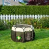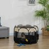 ROBUST MATERIAL: The puppy playpen consists of eight robust wall elements made of high-quality plastic material. The corners and edges are reinforced with secure stitching and the roof and groundsheet can be conveniently attached with a zip or easily removed. The waterproof groundsheet is very easy to clean. Includes four ground spikes for stability.