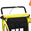 Always bring your children safely to their destination! This great bike trailer can accommodate two toddlers up to 18kg each. Thanks to its stable frame, reflectors and flag, your little ones will always have a particularly safe ride. The protective, roll-up cover and mosquito net also protect against precipitation and annoying insects. Equipped with a practical universal hitch, the trailer can be coupled to almost any bicycle.; DANGER! 1. The driver must be older than 16 years; 2. Children must be able to hold their heads up with their helmets on; 3. Do not exceed the maximum speed of 10 MPH (16 Km/H). Do not exceed speed of 8 mph (13 km/h) and reduce speed to 3 mph (5 km/h) when turning; 4. Do not make any modifications to the trailer; 5. Always instruct children NOT to rock, hop, lean, or stretch limbs outside of the booth; 6. The trailer/jogger/stroller is not suitable for walking or skating; 7. Only use it on slippery roads. Do not drive over curbs, potholes or off the road. Avoid bumps and holes.