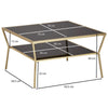 A blend of elegance and modernity, featuring two spacious table tops to accommodate all your essentials, complemented by a sturdy steel frame and sleek black and gold color combination, making it a perfect addition to your living space.