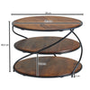 Introducing our modern round coffee table, featuring an unconventional table frame and three shelves with exquisite wood grain. With its compact dimensions, sturdy metal frame, and unique craftsmanship, it offers both functionality and style, making it a perfect addition to your living space.