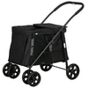 FOUR WHEELS: The dog trolley features brakes on two rear wheels for greater safety, two 360° universal wheels on the front and a handle for smooth movement and easy pushing.