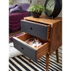 Rootz Bedside table is a solid wooden bedside table with lots of storage space.