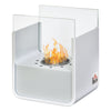 - The uniquely shaped ethanol fireplace is an eye-catcher that will take your home decor to the next level