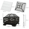 The Rootz Fire Bowl with Spark Guard, Grill Grate, Poker, Square, Steel Housing, Black, 66 x 66 cm