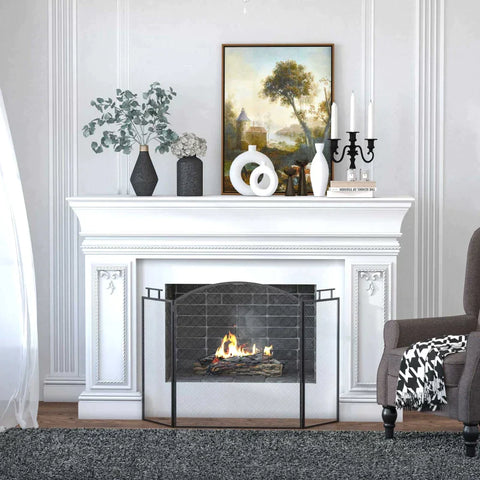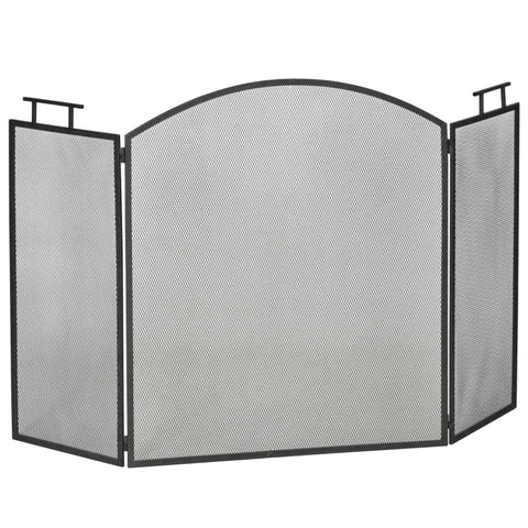 Rootz Fireplace Screen - Fireplace Protection - Grille Spark Protection - Folded Three-part Design - Metal - Black - 128 x 2 x 76.5 cm