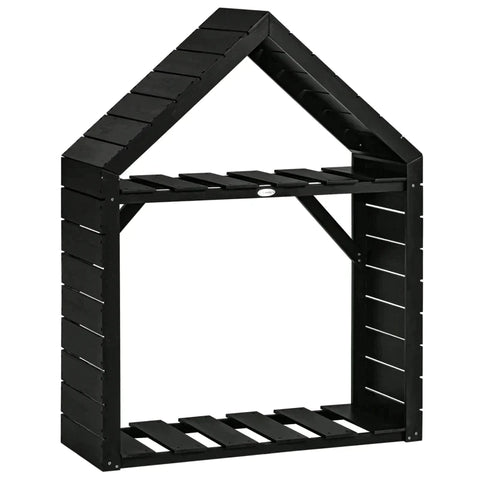 Rootz Firewood Rack - Firewood Shelf With Two Shelves - Weatherproof Varnish - Stable Cross Braces - Fir Wood - Black - 92 x 35.5 x 121.5 cm
