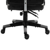 COMFORTABLE: Thick padding all over, padded armrests, a high back, swivel base and five castor wheels. Cut-out panels on the back to allow air flow. Wide seat for plenty of seating room.