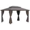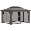 This 4m x 3m gazebo from Rootz is a great way to add elegance and a secure retreat to your outdoor space. The spacious pavilion offers many people a protective roof and pleasantly cool shade. It features a sturdy metal frame and a nifty two-tiered roof that ensures excellent ventilation. Practical side nets and curtains keep insects away and offer a pleasant privacy screen.