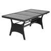 Special garden furniture: This garden table is a sturdy, robust table made of durable WPC material. With the resistant wood-plastic composition, this piece of furniture is very well protected against wind and weather. The table frame is made of solid steel and can withstand intensive use. The polyrattan has been specially developed for garden furniture. It is UV light resistant, dirt resistant and easy to clean.