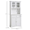 The kitchen cabinet from Rootz impresses with its elegant modern design in white. It offers plenty of space for dishes and other kitchen utensils. Thanks to its slim shape - it is only 79 cm wide - the cabinet also fits into small kitchens. The display cabinet is made of robust MDF board and can also be attached to the wall with a tilt protection. With this pretty modern cabinet, you can create additional storage space and make your kitchen even more homely.Elegant Modern Design: The Rootz kitchen cabinet features a sleek, modern design in white, adding a touch of elegance to any kitchen decor.Upper Cabinet Doors with Glass: The upper cabinet doors come with glass panels, allowing you to display your favorite dishes and kitchenware beautifully.Large Open Compartment: The spacious open compartment is perfect for housing a microwave, bread maker, or other kitchen appliances, making it highly functional.Adjustable Shelves: The shelves of the storage cabinet can be adjusted to three different positions, providing customizable storage solutions for your kitchen needs.Included in the Package