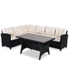 Well protected against wind and weather: With you don't have to worry about the lifespan. The corner sofa is made of the best materials and lasts a long time. The two benches have a solid, powder-coated steel frame that can withstand intensive use. The WPC table is made of a very robust and resistant wood-plastic composition with a wood look, so it is well protected against wind and weather.