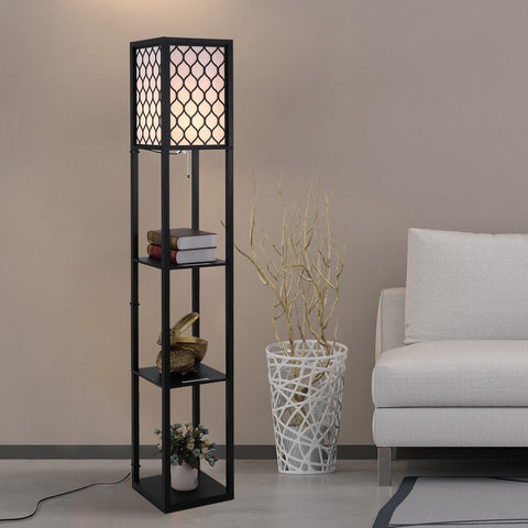 Rootz Floor Lamp - Black - Engineered Wood, Fabric - 10.23 cm x 10.23 cm x 14.17 cm