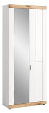 Elevate your entrance area with the stylish and functional Rootz Laredo Wardrobe. Crafted from wood, this wardrobe features a white matt front with a deep-drawn body in white melamine ABS Nox Oak Nb. It comes with 1 door, 1 mirror door, 1 clothes rail, and 4 shelves, offering ample storage space.