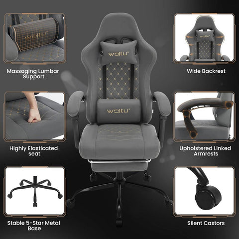 Rootz Massage Gaming Chair - Office Chair with Lumbar Support - Ergonomic Computer Chair - Adjustable Headrest - 64cm x 119.5-127cm x 54cm