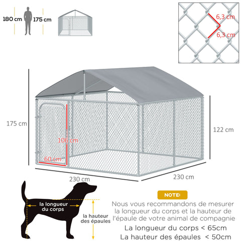 Rootz Outdoor Dog Kennel with Roof - Pet Enclosure - Wire Fence - Hot-Dip Galvanized - 230cm x 230cm x 175cm