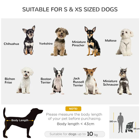Rootz Pet Stroller - Foldable Cat Dog Pushchair - Pet Travel Carriage with 4 Wheels - Adjustable Canopy - Safety Leashes - Storage Basket and Cup Holder for Small Dogs - Dark Gray - 76.5 x 52 x 95 cm