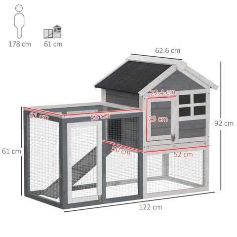 Rootz Rabbit Hutch - Dwarf Rabbit Hutch - Small Animal Hutch - Small Animal House - Small Animal Cage - Removable Floor - Fir Wood - Gray/Black/White - 122 x 62.6 x 92 cm