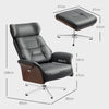 The Rootz Relaxation Chair with Stool, Reclining Function, Swivel, Leather Look, Up to 150 kg, Grey- Brown