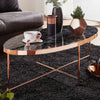 Rootz Coffee table is a beautiful oval coffee table that shines through its black marble look. The coffee table comes in the color combination of black and copper. The copper steel base in combination with the black-marble MDF plate ensures that this table will certainly get a lot of attention. Looking for a new oval coffee table with a black marble look? Look no further!