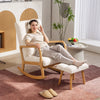 The Rootz Rocking Chair with Foot Stool, Fleece Cover, High Backrest, Wooden Legs, White