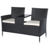 1x Rootz Poly Rattan Lounge Garden Bench - Black , Beige - Polyrattan, Steel, Glass - 52.36 x 24.8 x 33.07 cm