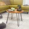 A charming blend of modern design and functionality. With a spacious round storage space, graceful sheesham wood tabletop, and elegant hairpin legs, it adds both style and practicality to any living space. Handcrafted with care, it features durable powder-coated legs and thoughtful details for floor protection. Elevate your living room with this adorable coffee table in brown sheesham wood and matte black frame.