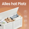 Discover the perfect combination of style and functionality with The Rootz Shoe Bench. This storage seat chest, featuring 2 safety hinges, not only provides a comfortable place to sit but also cleverly conceals your footwear and accessories. Its sleek matt white finish complements any decor while maximizing your entryway's space.