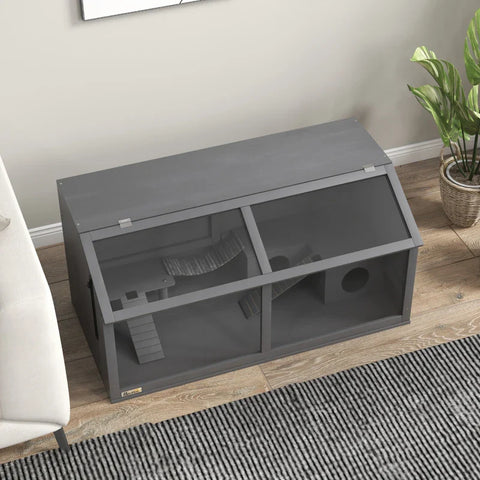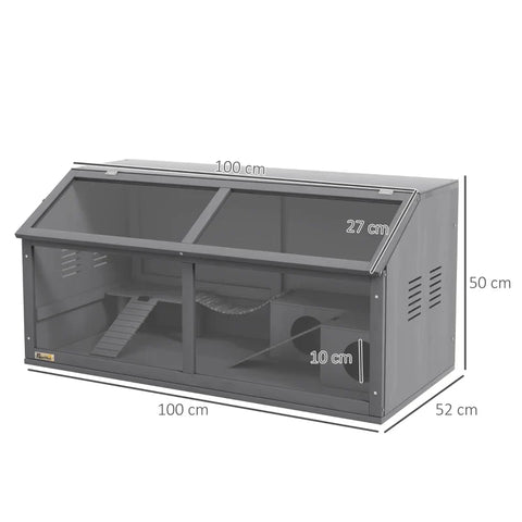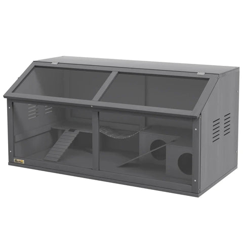 Rootz Small Animal Cage - Water Bottle - Hamster Cage - Including Accessories - Drinker - Fir Wood - Dark Gray - 100L x 52W x 50H cm