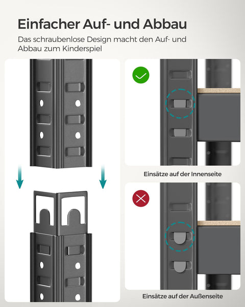 Rootz Steel Frame Heavy Duty Shelf - Gray Shelf - Adjustable Shelves - Galvanized Steel - MDF - 30cm x 75cm x 150cm