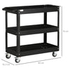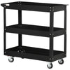 This Rootz rolling cart features 3 large shelves to organize tools, made of durable cold-rolled steel.