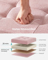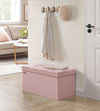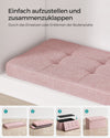 A versatile Stool with Storage Space in pastel pink color. Made of MDF, Imitation Linen, and 25D high resilience foam, providing durability and comfort. With a large dimension of 38 x 76 x 38 cm, and a weight of 5.6kg, it offers a max. static load capacity of 300 kg and a spacious 89-liter capacity.
