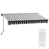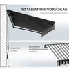 Protect your outdoor area immediately and without much effort with the retractable awning from Rootz. The frame is made of a mix of aluminum and metal, making it stable and reliable for outdoor use in any weather. With the included mounting hardware, you can attach this balcony awning to a concrete wall, a solid brick wall, and even a wooden fence, door, balcony, or window.Durable and Weather ResistantThe Rootz Sun Awning is built to withstand various weather conditions. Its aluminum and metal frame ensures stability and longevity, making it a reliable choice for any outdoor setting.Easy InstallationWith the included mounting hardware, you can effortlessly attach the awning to different surfaces such as concrete walls, solid brick walls, and wooden fences. No professional help needed!UV ProtectionThe 280 g/m² coated polyester roof provides excellent protection against sun glare and harmful UV rays, ensuring a comfortable and safe outdoor experience for you and your family.Adjustable and ConvenientThe adjustable umbrella angle from 45-85° allows you to customize the shade according to your needs. The included remote control and manual hand crank offer flexible operation options.- Color: Gray+White