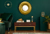 Add a touch of elegance to your space with The Rootz Sunflower Round Wall Mirror. This modern mirror features a unique sunflower-shaped frame with a metal cord chain detail, suitable for various rooms.